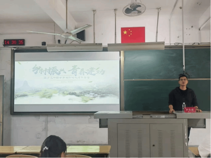 25级辅导员李伟俊通过对学员未来职业规划的询问,引出乡村振兴,青春建功——在广袤田野中书写新时代青年答卷这一主题,他从总体要求、重点任务、帮助乡村青年创业就业、保障机制四个方面,介绍乡村在产业、文化、生态等方面的发展机遇,并分享了多位青年扎根乡村创业、推动文化传承的成功案例。最后,他与学员畅谈理想和就业意向,借自身经历呼吁学员在乡村广阔天地中贡献青春力量。