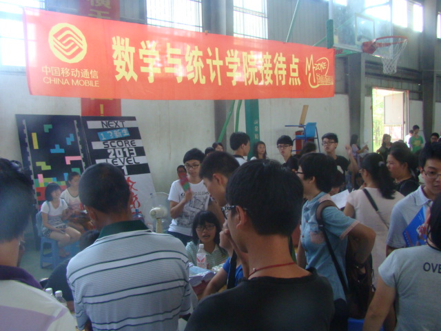 在球类馆迎接2013级新生。迎新从早上7点持续到下午6点,共有来自全国各地的302名学生注册报到。学院党总书记徐志怀、团委副书记陈明以及各年级辅导员亲临现场和学生一起开展迎新工作。2012级、2011级同学也各司其职,提前做好分工,认真完成各项工作。