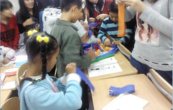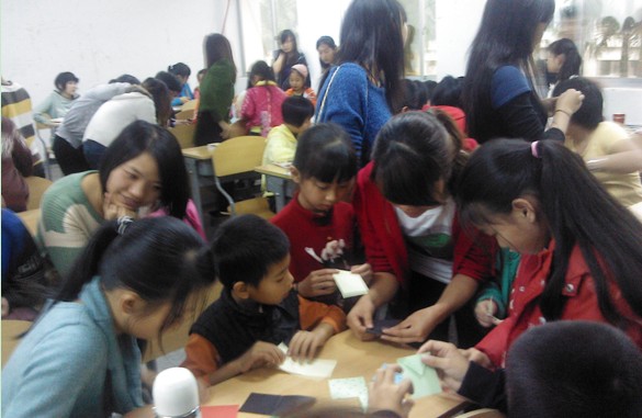 11月25日,数学系青年志愿者中心在砺志楼204教室举行了“感恩手中现”活动。当天下午,志愿者们和35名接受数学系义务家教的孩子们一起进行手工艺品制作,完成的手工艺品将由孩子们亲手送给他们想要感恩的对象。 活动现场,志愿者们分为7个小组,每组5个小朋友,由志愿者负责教他们制作简单的手工艺品,如纸鹤、星星、玫瑰等等。志愿者们希望通过简单的折纸,教会孩子们感恩。