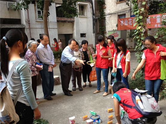 2012年10月20日上午,为了在重阳佳节来临之际及时给社区老人传递爱心,在水仙花社区居委会的配合下,我系志愿者精心准备,携手水仙花社区开展了“重阳节老年人游园”活动。志愿者们为老人们表演了精彩的民族舞,表达了同学们的一片敬老之情。志愿者们还组织陪同老人们开展了丰富多彩的游园活动:套圈、纸球投篮、夹珠子、赶球、托球……让老人们在欢乐的游戏中享受了天伦之乐。此次志愿者为老人们献爱心活动受到了社区居委会的高度肯定和社区老年人的一致欢迎,进一步扩大了我系志愿者服务社会的影响力。
