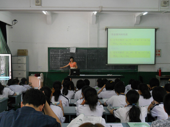 5月23日上午,漳州师院数学与应用数学专业“卓师班”实习生在省一级达标校漳州三中崇德楼一楼多功能教室开设两节全校性公开示范课。公开课由漳州三中高一年级数学组举办,“卓师班”实习队王玫、庄雅清分别主讲了“等比数列”与“等差数列的性质”教学内容,漳州三中教务处主任王伟宣、漳州三中高一年级数学组组长杨朝熙、我校教师教育学院周仕荣博士、实习支教队指导老师黄韩亮和部分三中高一数学老师听取了公开课。