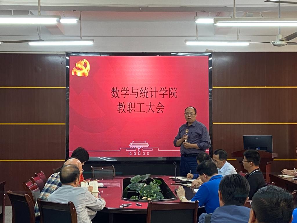 研究生教育工作,从研究生课程成绩的提交与归档、毕业生学位论文的指导与把关、研究生复试准备等方面展开发言,并对基金申报、科研经费报销规范进行了通报,鼓励广大教师积极开展日常讨论班,持续提升学术水平,提高科研实力。