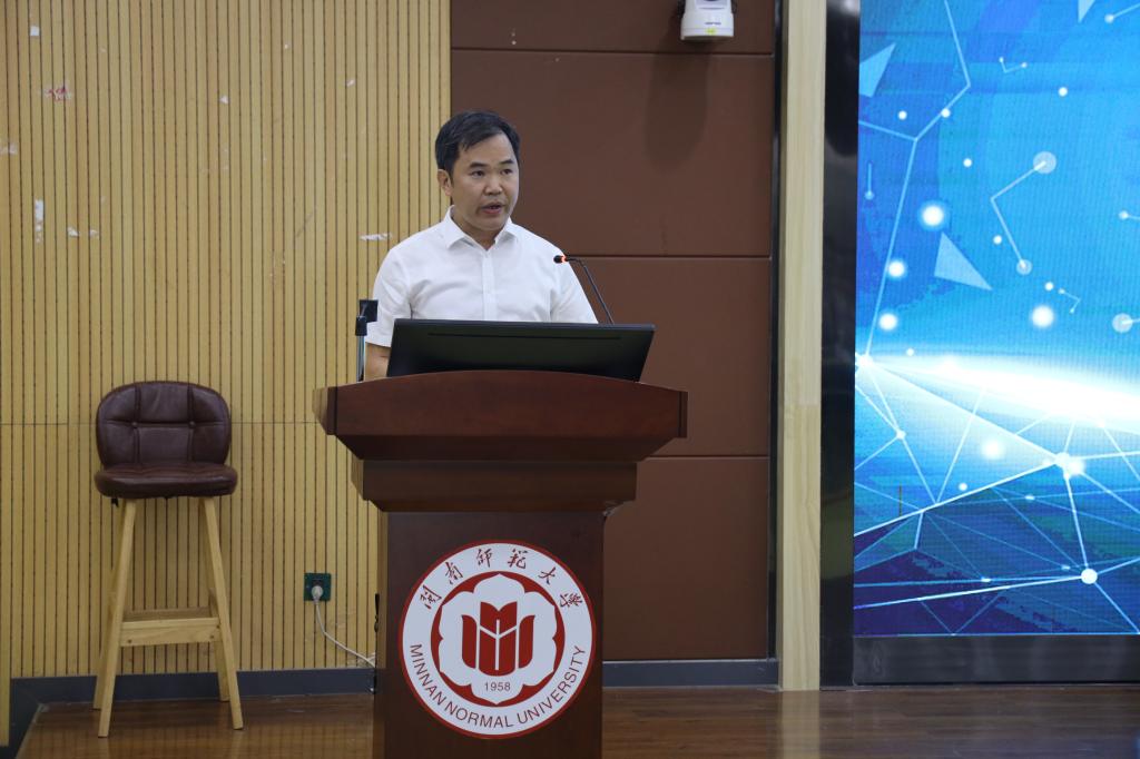 民进漳州市委副主委兼漳州市数字建设中心副主任林阳山作题为《数据赋能中学数学新课程改革》的报告。林阳山副主任依据学校信息化的调研结果指出如今漳州信息化教育所存在的痛点,提出家校教育服务平台应搭建框架来做学校、老师、家长的好帮手,培养学生良好的学习习惯,用数据赋能学生学习、考试、报考、择业,同时还介绍了此次试点学校的相关实施方案。