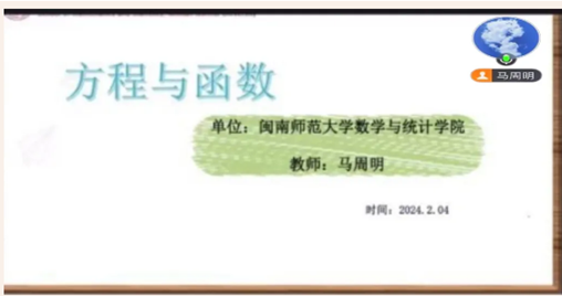 教授马周明老师为同学们讲解关于代数的知识。会议伊始,马老师向学生们介绍代数的基本概念和应用,通过解释代数的定义、举例说明代数在实际生活中的运用等方式,激发学生的兴趣和好奇心。
