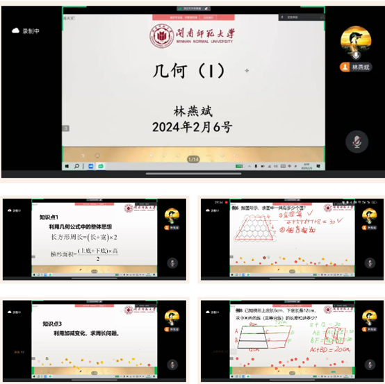 林燕斌老师为学子们进行冬令营培训活动。此次培训,林燕斌老师围绕数学中的几何思想、采用知识点和例题结合的方式对求几何图形的线段长和周长展开讲述。课堂上,林燕斌老师先对知识点进行引入、讲解,随后结合例题进行讲解。老师在对例题的讲解过程中,同学们在评论区积极回应,一同作答,学习热情高涨,与老师积极互动。老师选取的例题丰富,类型多样,一道例题可以引出多种解法,让学子们受益匪浅。