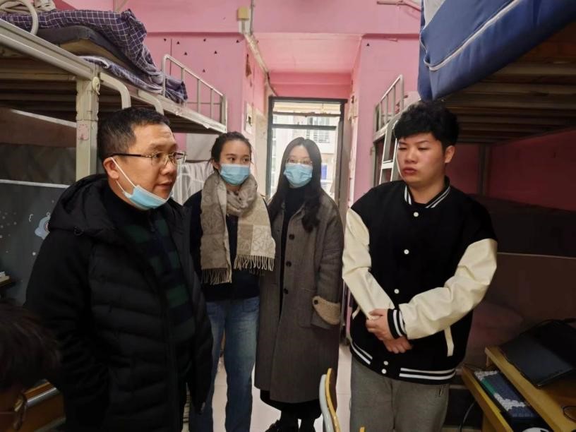 走访期间,院党委副书记胡海智和全体辅导员详细询问了同学们的返校情况和返校后的学习安排,并针对同学们提出的问题给予了耐心细致的解答,叮嘱同学们要严格遵守学校学院的各项规章制度和宿舍管理规定,注意用电安全和人身财产安全,提高安全防范意识,谨防诈骗;要合理安排作息,课余时间加强体育锻炼,养成良好个人卫生习惯和健康生活方式;并提醒同学们要制定好新学期的学习目标和规划,以饱满的精神状态走进新学期。