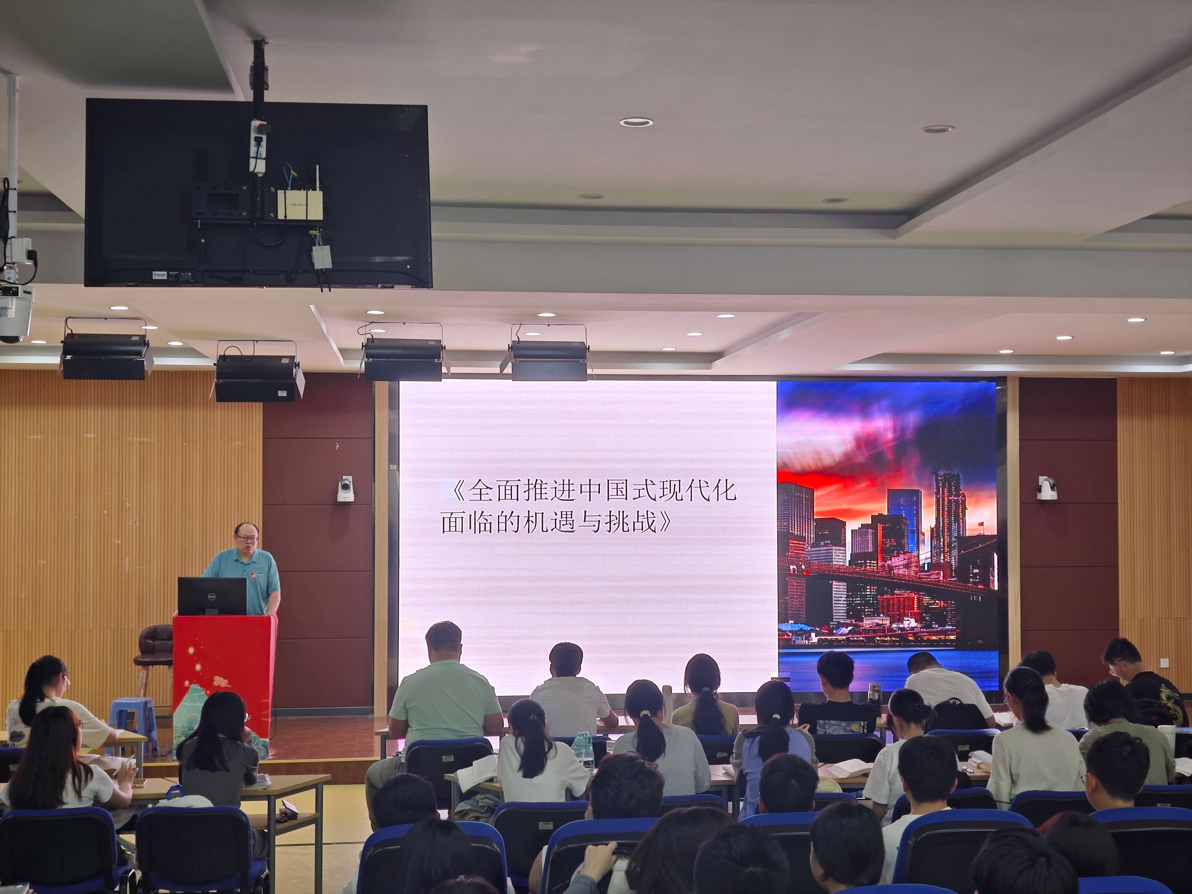 5月6日,黄韩亮院长给23数本1班2班上了两节以《中国式现代化面临的机遇与挑战》为主题的形策课,指出当今中国正处于现代化的关键时刻,面临着前所未有的机遇和挑战。在全球化的背景下,中国正在积极应对各种挑战,同时抓住机遇,推动国家发展迈向新的高度。为此,学院致力于提升教育水平和人才培养质量,为中国的未来发展注入源源不断的活力。最后院长提出建议,身为新时代青年,我们应不断创新发展,积极应对各种挑战,推动国家实现更高水平的现代化建设。