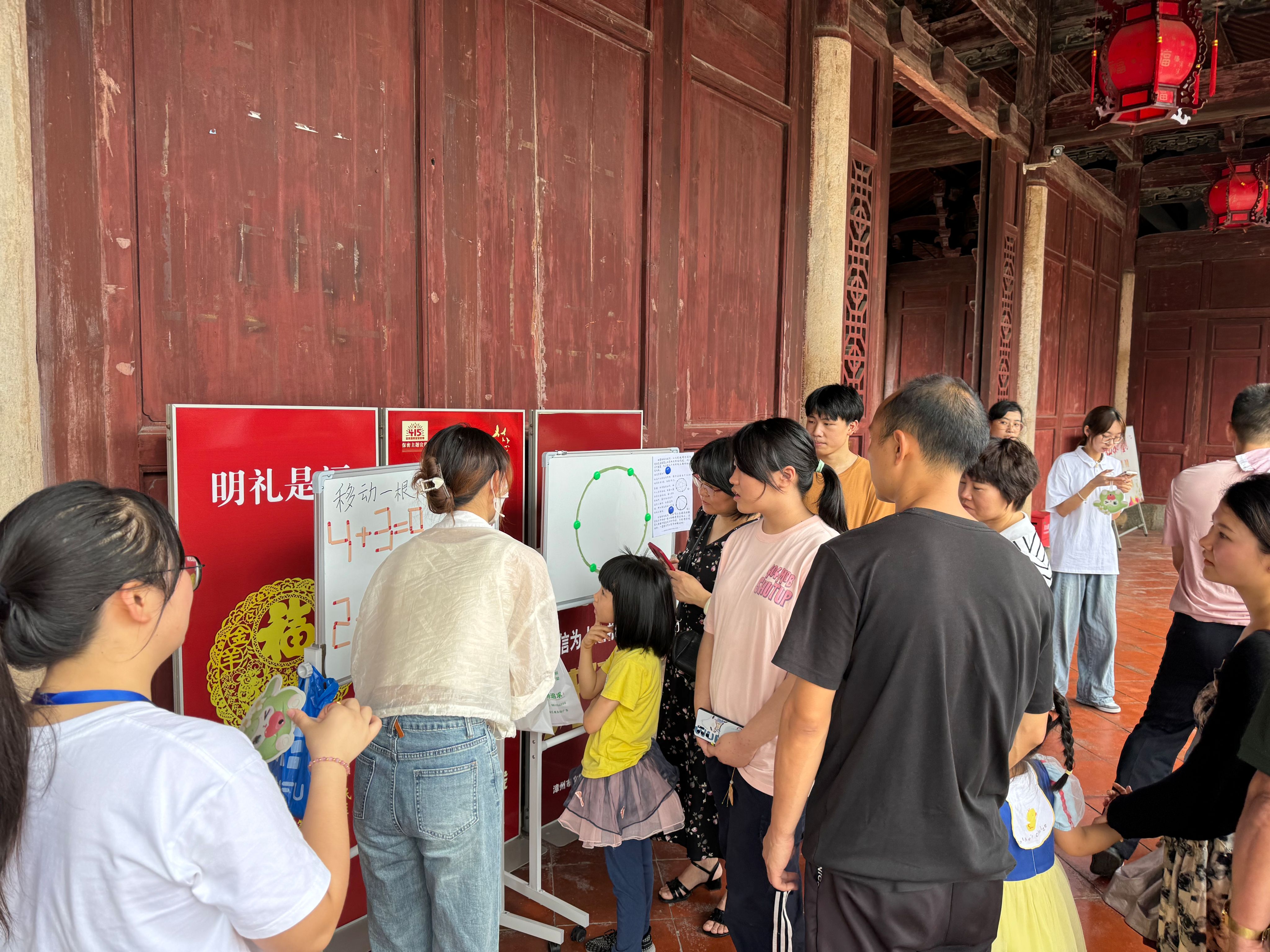 此次数学文化节在漳州古城文庙成功开展了“数学π对”趣味游园活动,通过“古诗中的数学,剪纸中的数学,魔术中的数学,游戏中的数学,智具中的数学,数学家的故事”,六个展区的活动,让参与者在游戏中参与摊位集章,玩转数学,寓教于乐,引发数学思考。本次活动吸引了500余名大、小朋友参与及不少中外游客的围观,让孩子们在感受数学知识与魅力,享受数学之乐、数学之美的同时,增强了学习数学的信心。