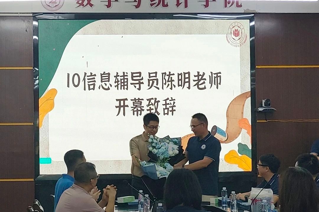 出席本次活动的有数统院党委副书记胡海智、原辅导员陈明老师、原带班学长刘伟强以及10数学系信息班全体校友。