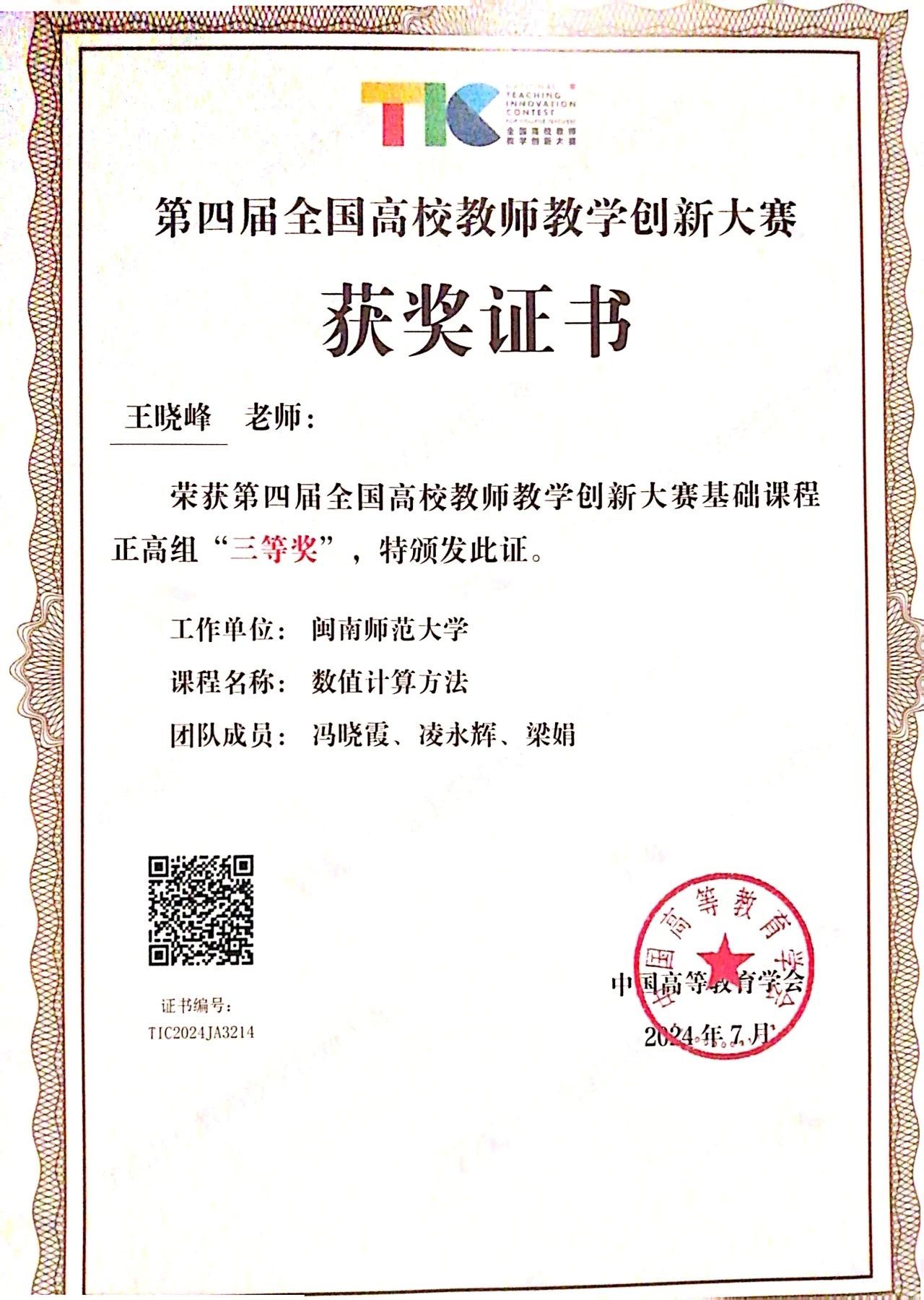 王晓峰老师凭借扎实的专业能力、出色的现场表现荣获正高组三等奖。