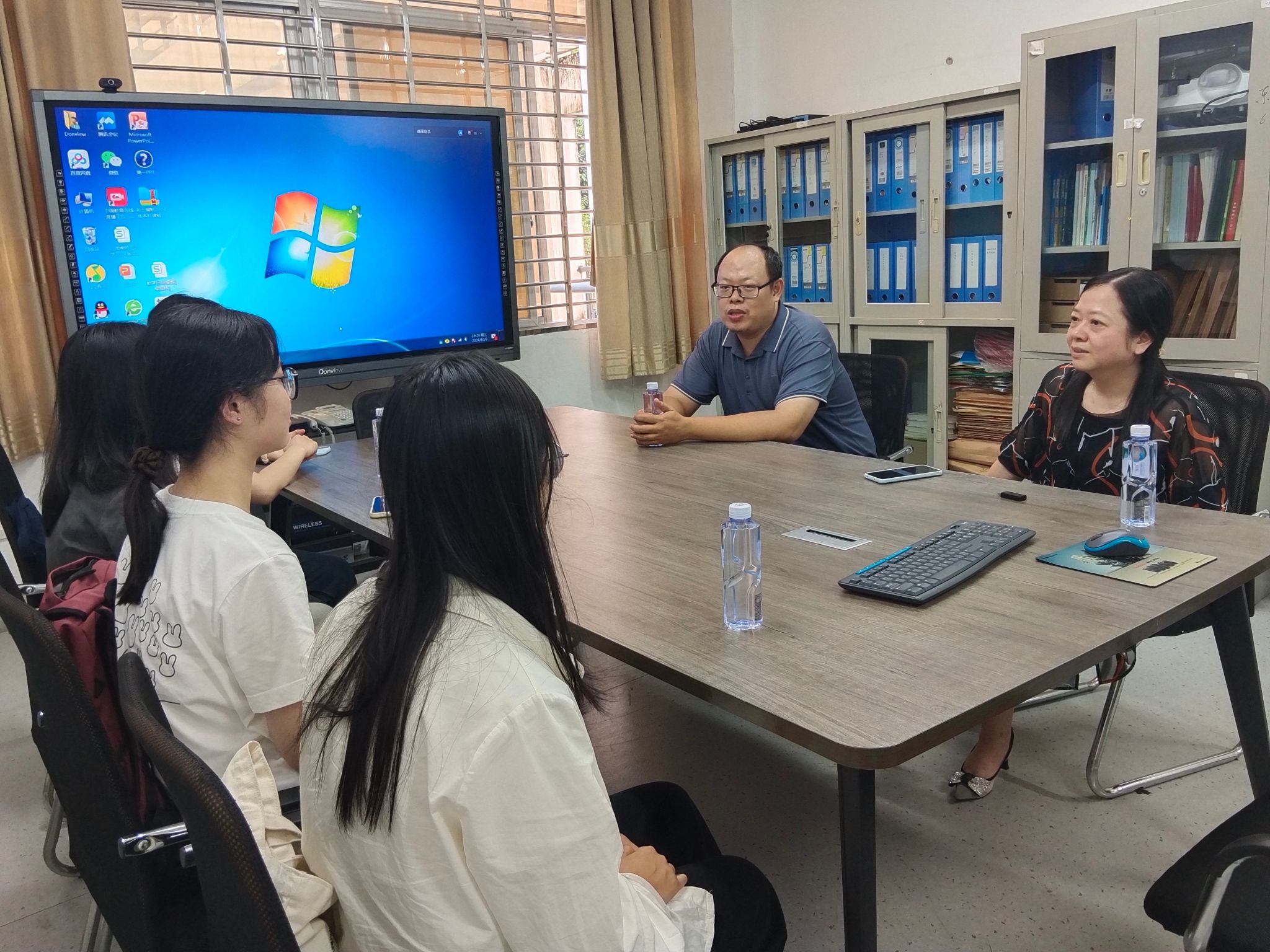在砺志楼123会议室召开座谈会,学院执行院长黄韩亮、教师工作部(人事处)副部(处)长王艳与来自怀化学院四名交流生进行座谈交流。
