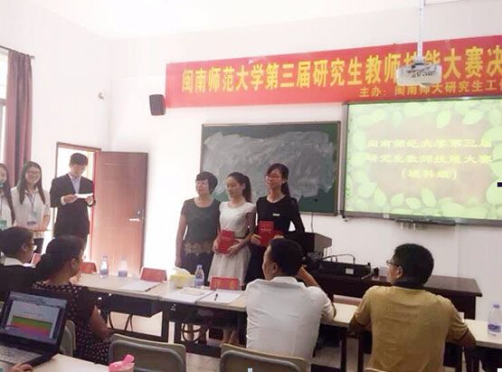 11月8日上午,我校第三届研究生教师技能大赛决赛在创业楼教师教育学院实训中心举行。本次比赛特别邀请了我校相关学科教学法的资深教研教师以及漳州三中、芗城中学、漳州普通教育教学研究室等中学高级教师担任评委。