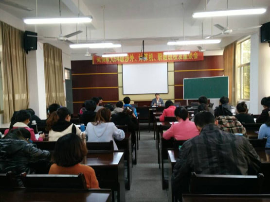 2014-2015下学期全体研究生会议在砺志楼114隆重召开。出席会议的有副院长蔡建平教授、党总支副书记张美容老师、研究生辅导员李气芳老师以及全体研究生。会议由蔡建平副院长主持。