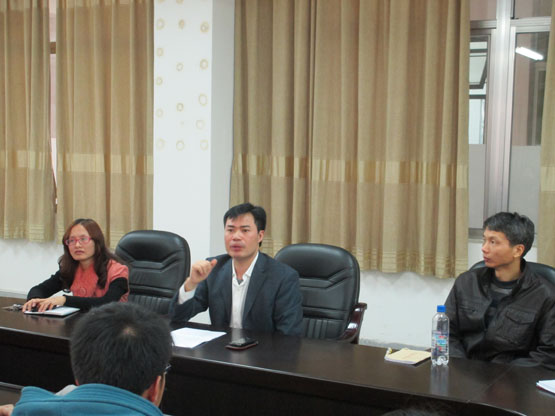 蔡建平副主任首先分别对三个年级的同学关于本学期的学习、科研、毕业就业等工作进行了部署;随后,他为上学期的四位优秀研究生助教颁发证书,并表示了热烈祝贺。最后,他解答了同学们在生活和学习中遇到的问题。