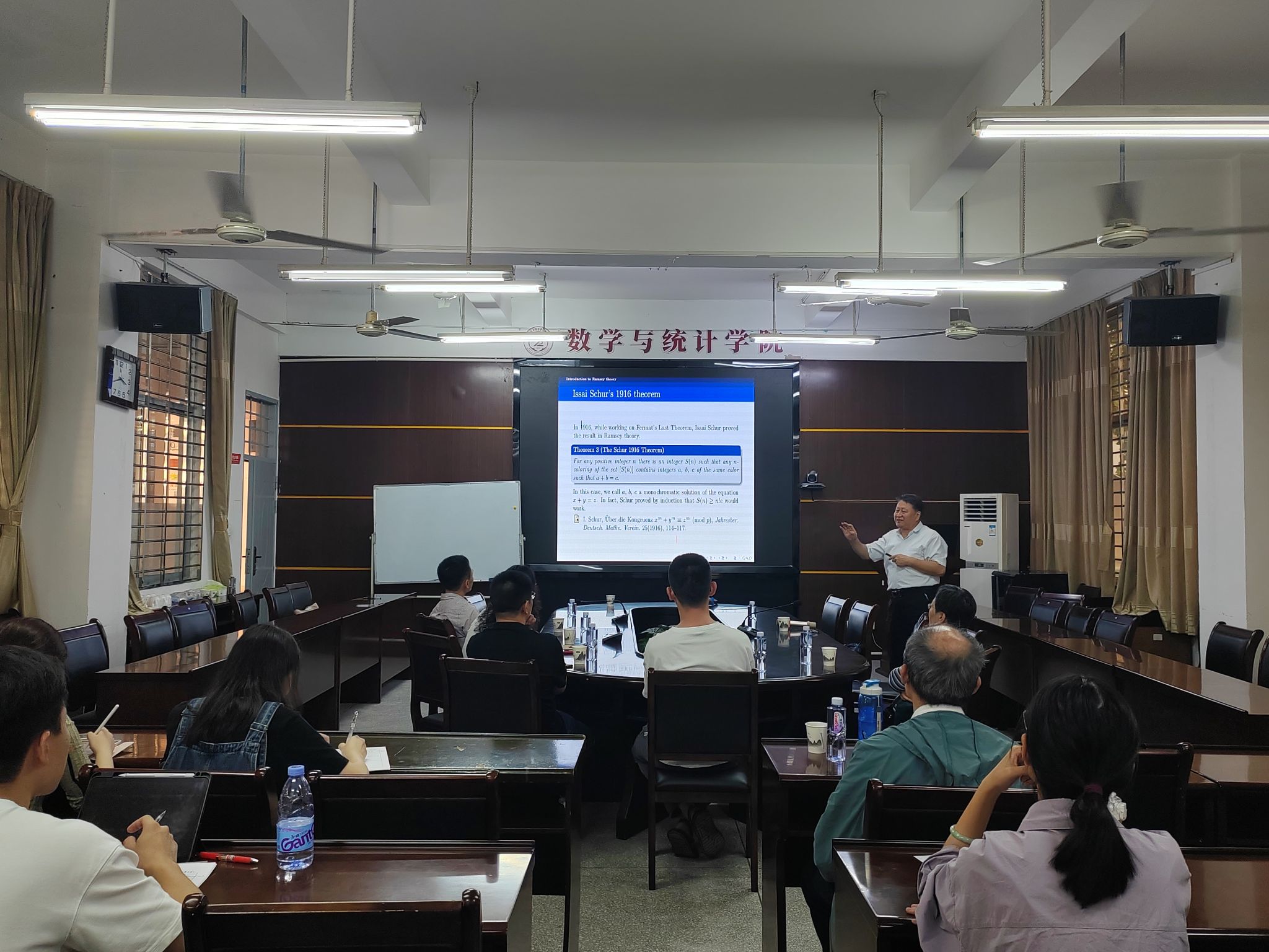 邀请,11月11日下午南开大学李学良教授在砺志楼114作了题为《Some Gallai-Ramsey type problems and results》的报告。相关师生聆听了此次报告,报告由黄韩亮老师主持。