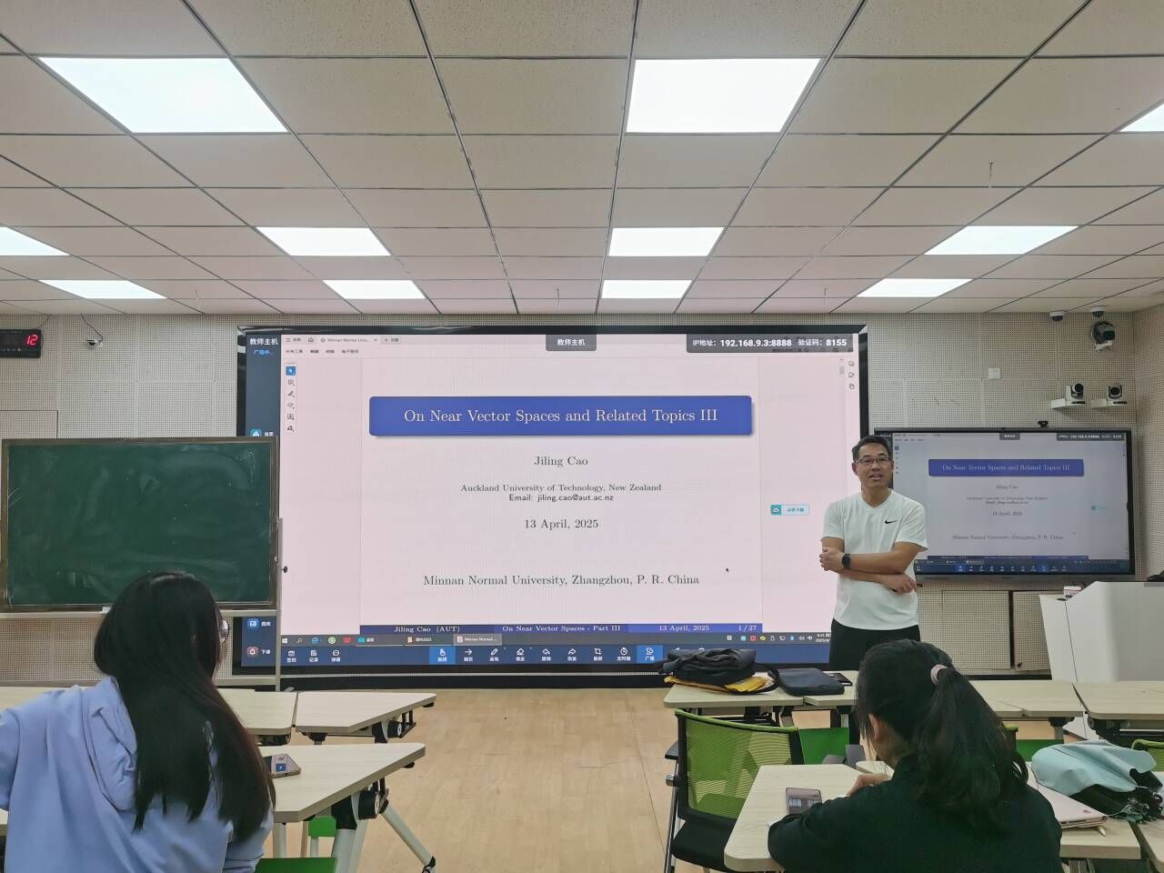 邀请,4月13日早上,新西兰奥克兰理工大学曹继岭教授在砺志楼114作了题为《On Near Vector Spaces and Related Topics III》的讲座。相关师生聆听了此次讲座。