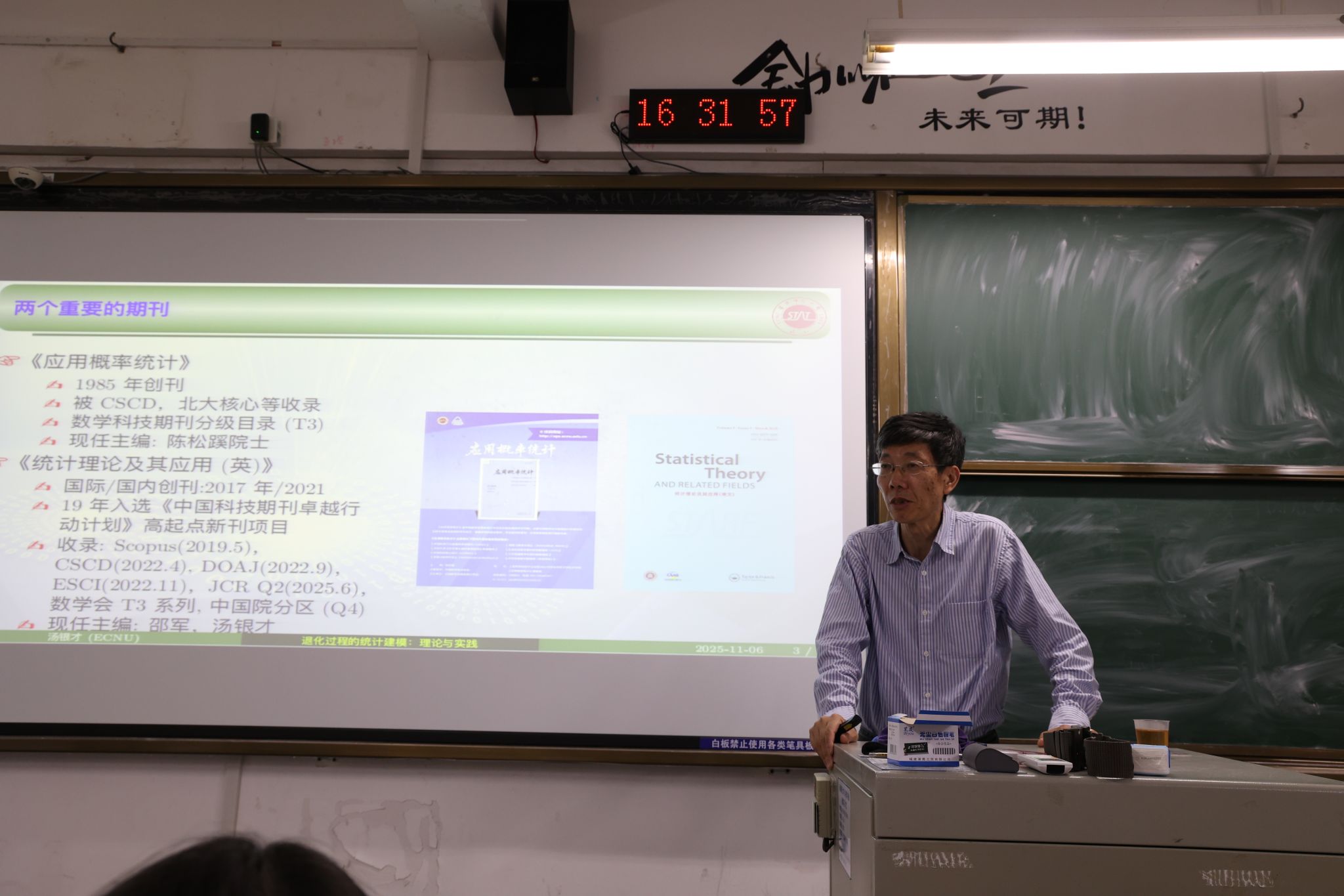 邀请,11月5日,华东师范大学统计学院汤银才教授在砺志楼303和砺志楼114分别作了题为《退化过程的统计建模:理论与实践》和《面向重大战略需求,积极开展横向研究》的讲座。相关师生聆听了此次讲座,讲座分别由施建华教授和黄韩亮院长主持。相关师生聆听了此次讲座,讲座由施建华老师主持。