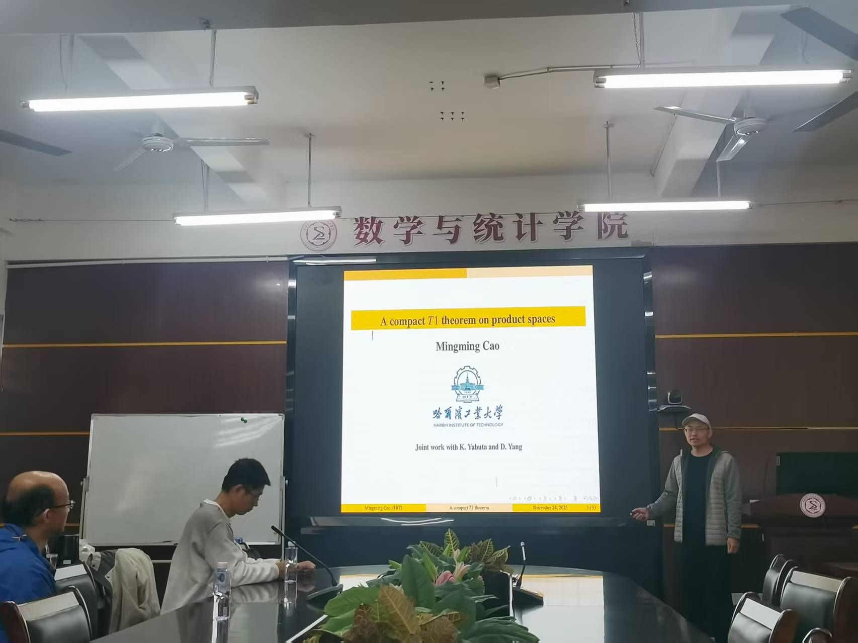 邀请,11月24日上午,哈尔滨工业大学曹明明教授在砺志楼114作了题为《A compact T1 theorem on product spaces》的讲座。相关师生聆听了此次讲座,讲座由温泳铭老师主持。
