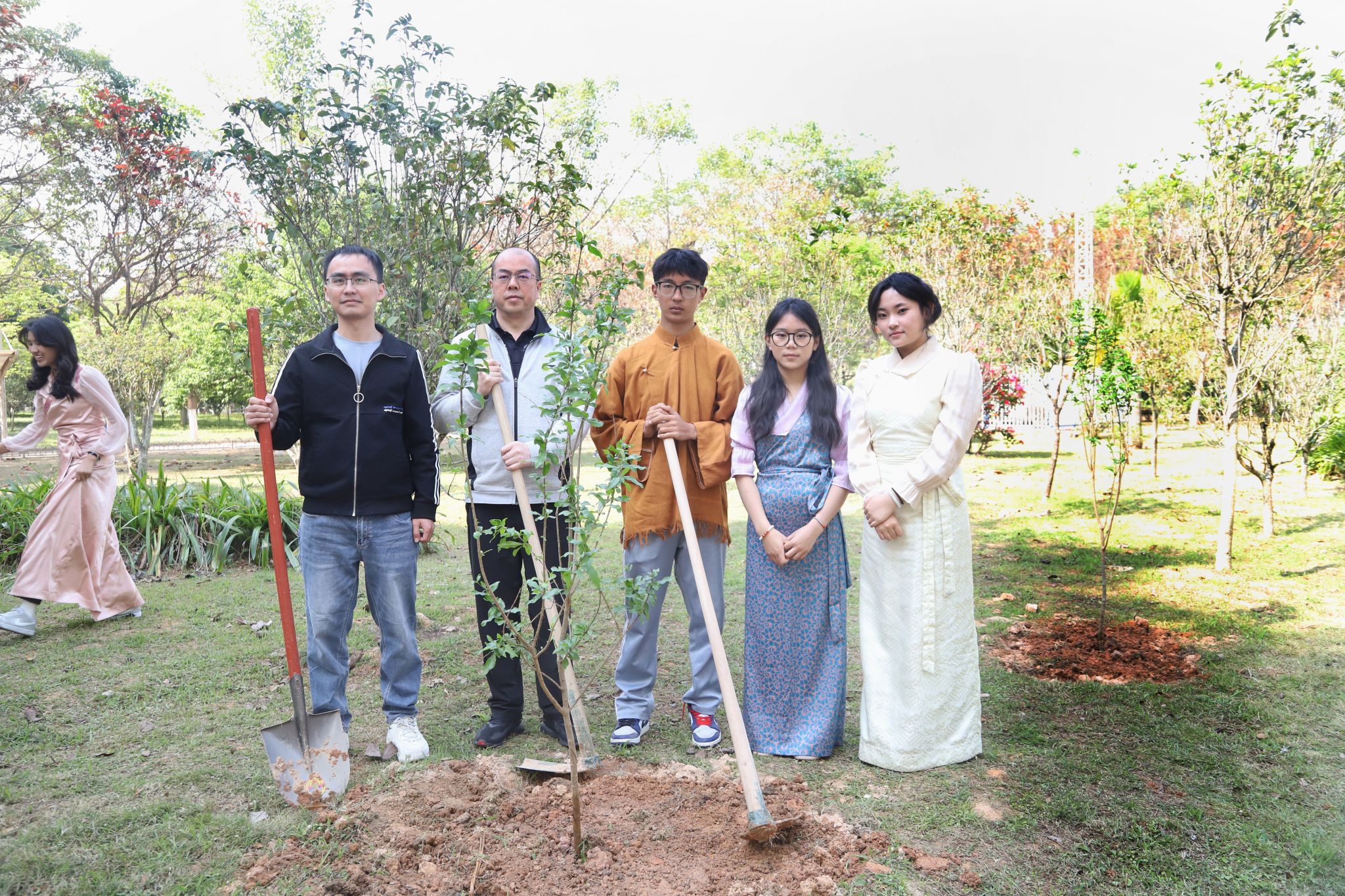 根脉相连共成长,枝叶相倚同筑梦。两校师生挥锹培土,在闽南师大校园栽下8棵象征民族团结的石榴树。石榴树扎根闽南红壤,象征各民族像石榴籽般紧密相连;两校师生共培沃土,寓意各民族优秀文化在交流中交融创新。陈晶莹与杨娟共同为“同心林”景观石揭幕,标志着两校铸牢中华民族共同体意识的合作迈出新步伐。爱心助教学生代表林晖与西藏班学生普布卓玛激动地表示:“这是8棵象征“团结、繁荣、希望”的石榴树,见证着闽藏学子的深厚情谊!”