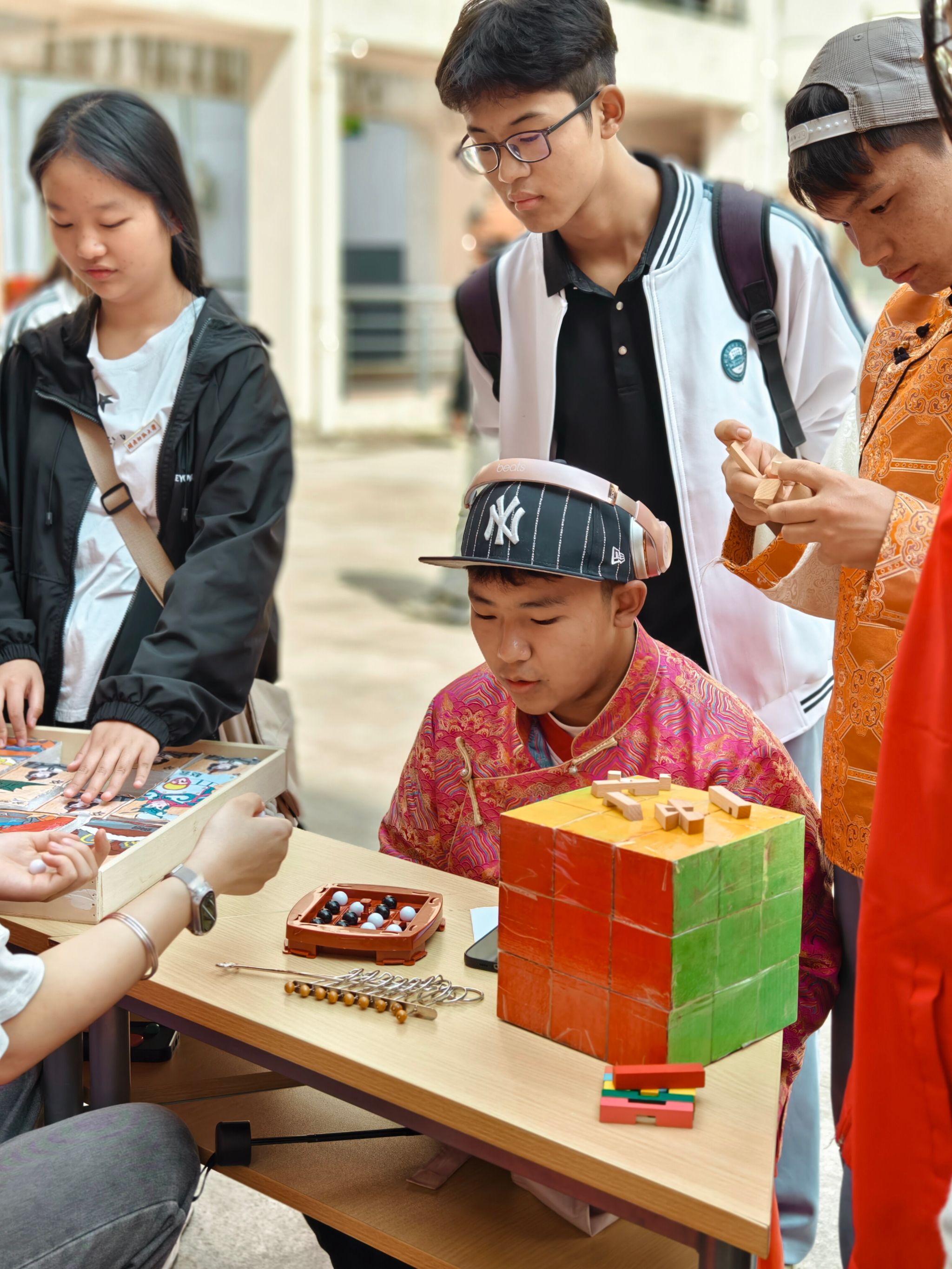 第四届数学文化节,在志愿者的带领下开启数学文化探秘之旅,沉浸式体验数学魔术、益智教具等特色活动。活动过程中,西藏班学子在空地围成圆圈,跳起欢快的锅庄舞。旋转的裙摆与飘动的哈达交相辉映,志愿者们自发加入舞蹈行列,围观师生纷纷举起手机记录这动人的民族团结画面。