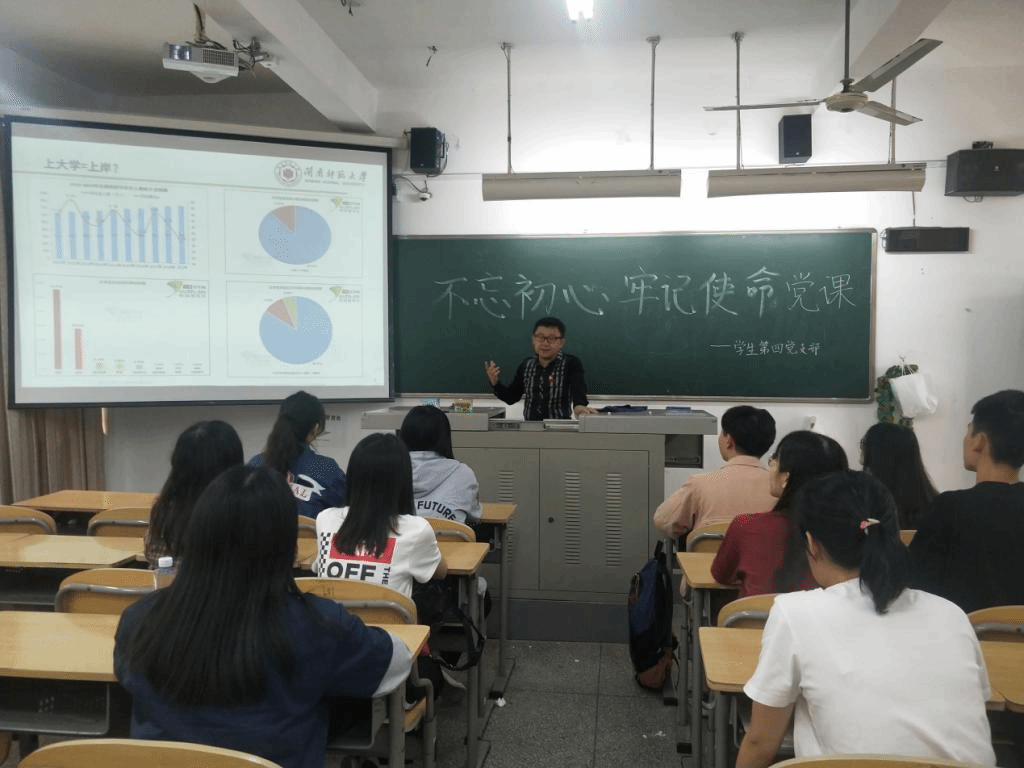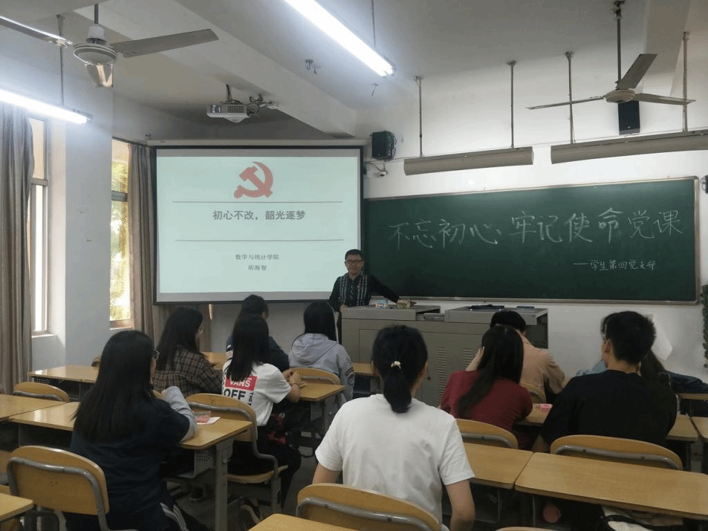 学生第四党支部于2019年11月14日在砺志楼202召开“不忘初心、牢记使命”主题党课教育。学院胡海智副院长以“初心不改,韶光逐梦”为题给学生第四党支部全体党员上了一次生动的党课。