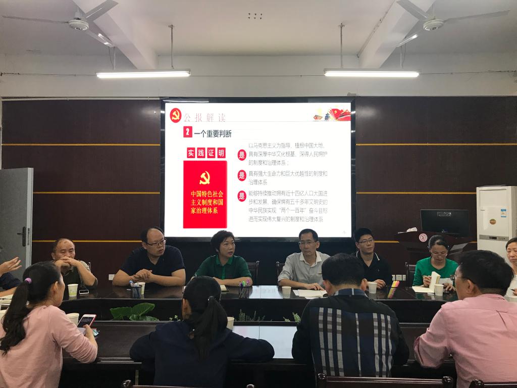 党委在砺志楼114召开专题会议学习党的十九届四中全会精神。