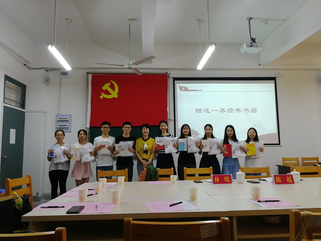 活动伊始,陈超首先为6月份入党的9名党员赠送红色经典书籍、学校纪念徽章和纪念服。接着,林晓向党员赠送“政治生日”贺卡。随后,在支部书记沈瑞芳的带领下,支部全体党员面向党旗重温了一遍入党誓词,思想上再次接受洗礼。座谈会期间,支部党员代表结合学习习近平总书记在纪念五四运动100周年大会上的重要讲话精神,畅谈了个人的心得和体会。最后,党员代表林霞玉代表毕业班党员发出倡议,号召毕业班党员感恩母校,展示风采树形象;做安全文明离校的模范带头人;谨记校训,爱校荣校;不忘初心,牢记宗旨,以饱满的精神状态走上新的学习和工作岗位,为母校争光。