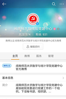 早在2013年4月作为学校四个试点院系之一建立党建官方微博平台,该平台经过1年多来的建设,目前已趋于完善,成为学院党建工作的重要阵地。至此,通过微博微信平台建设,形成了学院网上党建工作的重要载体,构建了线上线下一体化的党建工作平台,延伸了学院党建工作的触角,适应了信息化时代党建工作的要求。