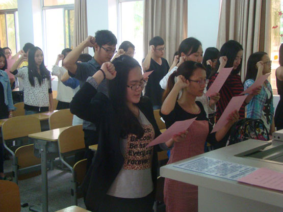 在砺志楼204召开预备党员宣誓大会。学院党总支秘书林晓及10级、11级预备党员出席宣誓大会。