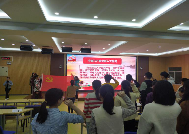 在砺志楼120举行预备党员入党宣誓仪式。院党委组织员方婷与本批次预备党员参与了此次宣誓仪式。