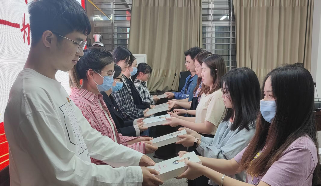 支部党员代表为新生党员赠送书籍,分享了对学弟学妹们的殷切期望,希望新生党员牢记“我将无我,不负人民”的为民情怀,感党恩、听党话、跟党走,不负韶华,奋力谱写新时代青春之歌。