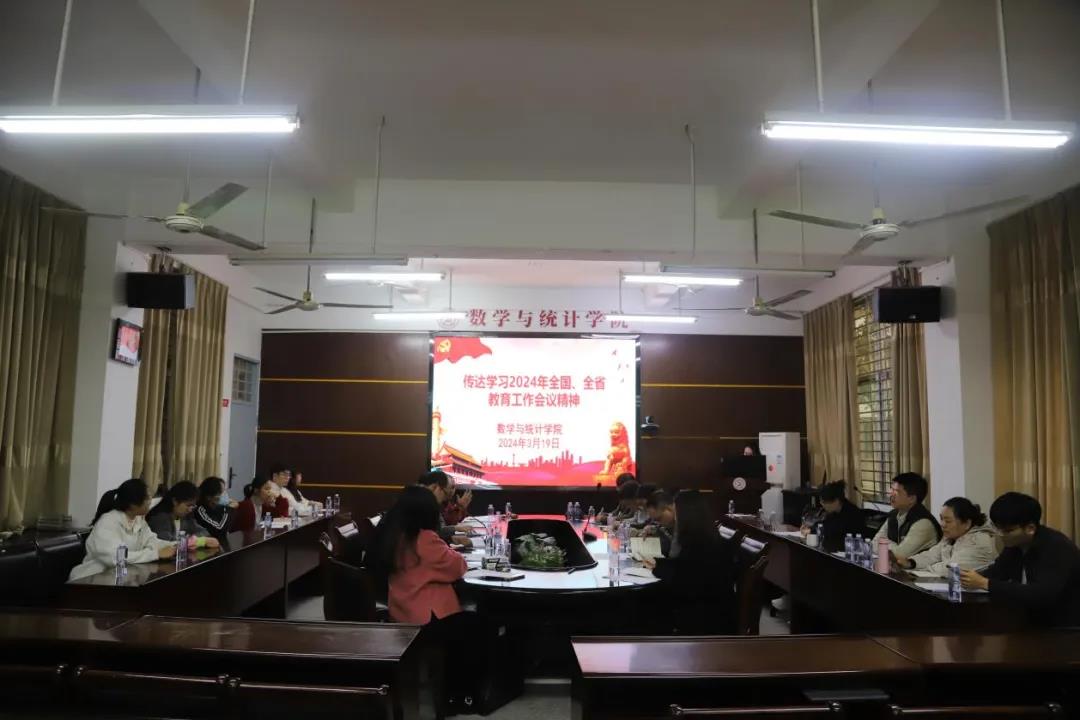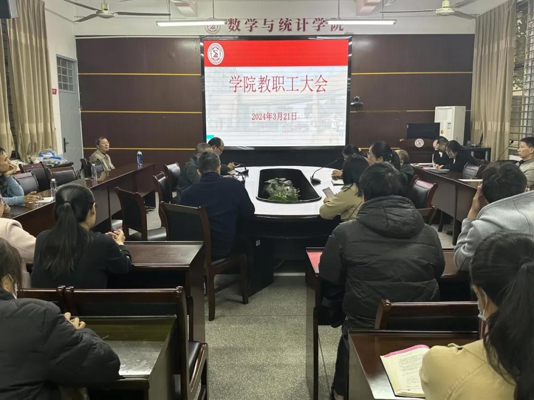 会议强调,要坚持以习近平新时代中国特色社会主义思想为指导,把学习贯彻两会精神与学习贯彻习近平总书记关于教育的重要论述紧密结合,奋力提高站位、主动作为、真抓实干,立足“高校要为发展新质生产力提供有力支撑”这一职责使命,以数统申博为目标,积极推动学院的各项事业发展,革新增效、融合发展,切实推动学校“双一流”建设取得新成效新突破,为国家现代化建设提供优质教育服务,努力办好人民满意的教育。
