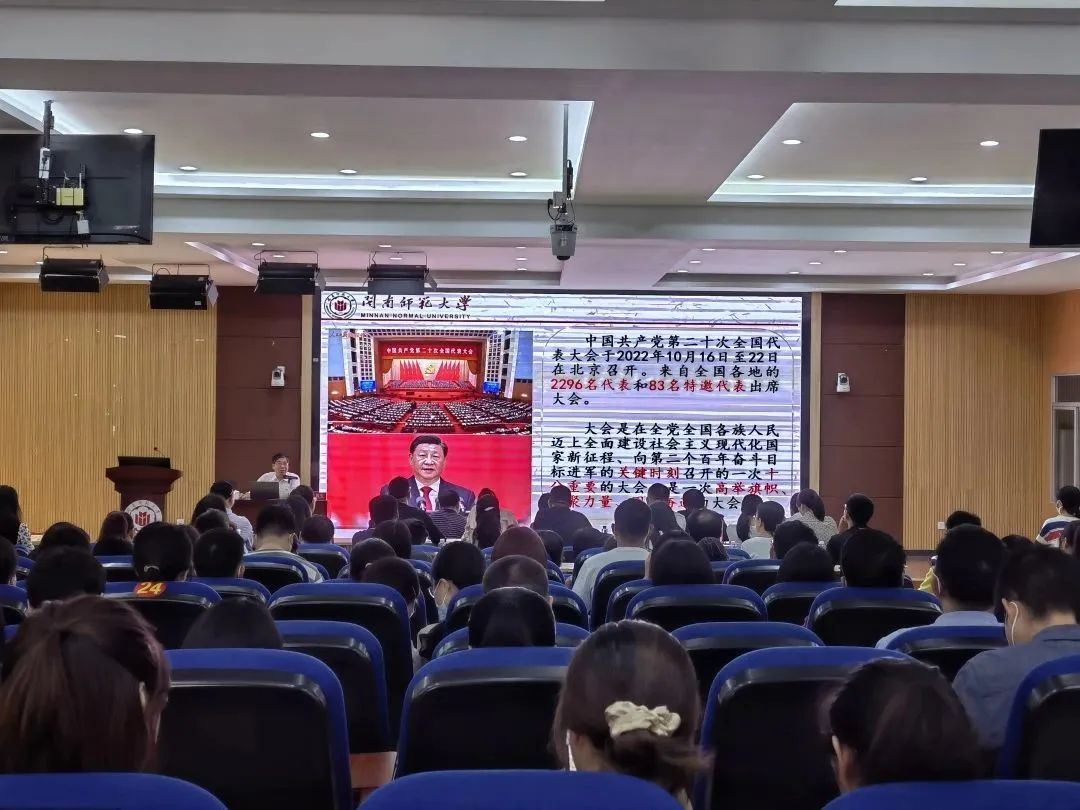 课上,陈再生教授以深刻领会党的二十大的主题、深刻领会过去5年的工作和新时代10年的伟大变革、深刻领会开辟马克思主义中国化时代化新境界、深刻领会新时代新征程中国共产党的使命任务等九个深刻领会为切入点,认真解读了党的二十大精神。随后,从百年大党的伟大成就、党的二十大主要精神、百年大党部署再出发三个方面进一步带领全体师生党员深入学习党的二十大精神。