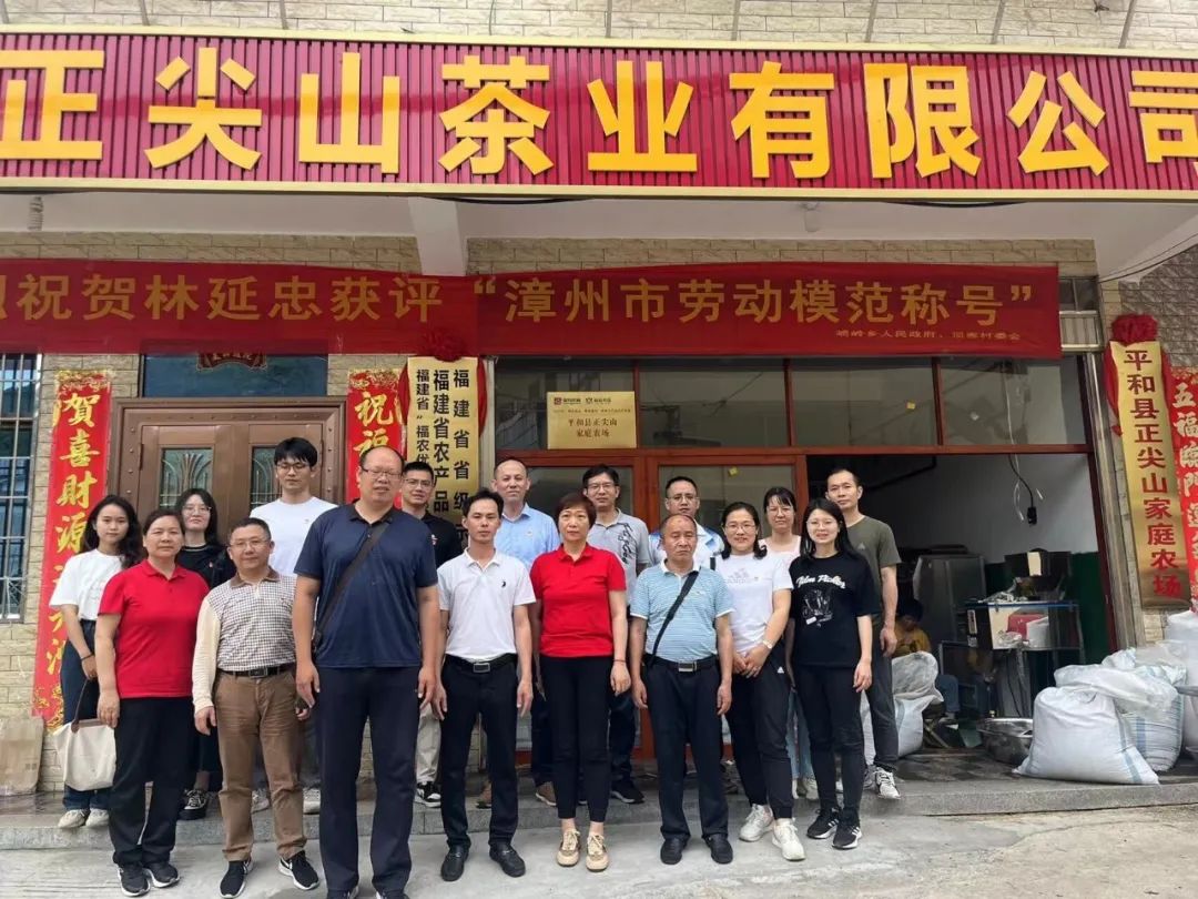 党委书记陈晶莹、执行院长黄韩亮、党委副书记胡海智、副院长周仕荣、林国平以及党支部书记一行前往漳州市正尖山茶叶有限公司生产基地走访调研,与该公司总经理、学院优秀校友林延忠进行深入交流。