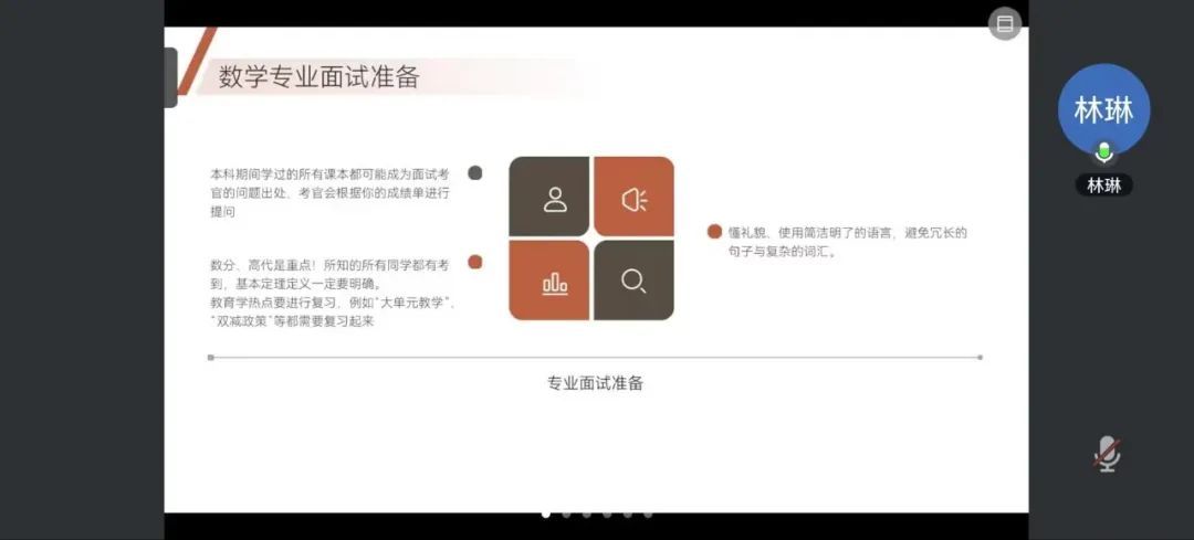林琳从学科数学专业面试的角度出发,详细阐述了复试专业课科目的考察重点。她指出,数学分析与高等代数是复习的重中之重,需明确掌握基本定理与定义。同时,她提醒考生在复试中应礼貌回应老师提问,保持自信,用简洁明了的语言表达观点,避免冗长与复杂。