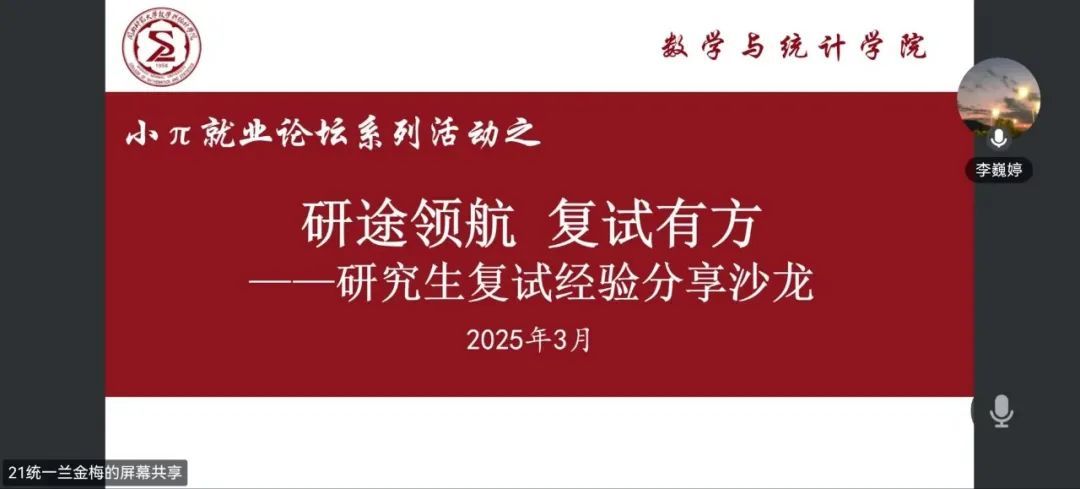于3月9日晚借助腾讯会议平台开展“研途领航,复试有方”——研究生复试经验分享沙龙。