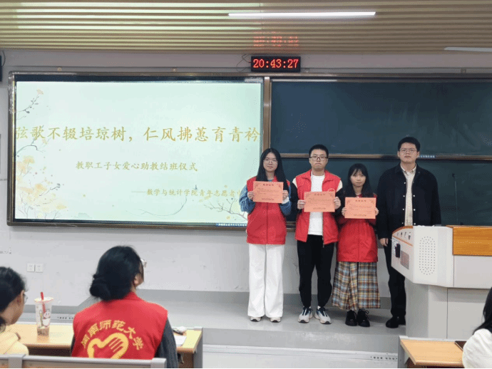 于2025年12月20日晚在砺志224举办本学期以“弦歌不辍培琼树,仁风拂蕙育青衿”为主题的教职工子女爱心助教活动结班仪式。