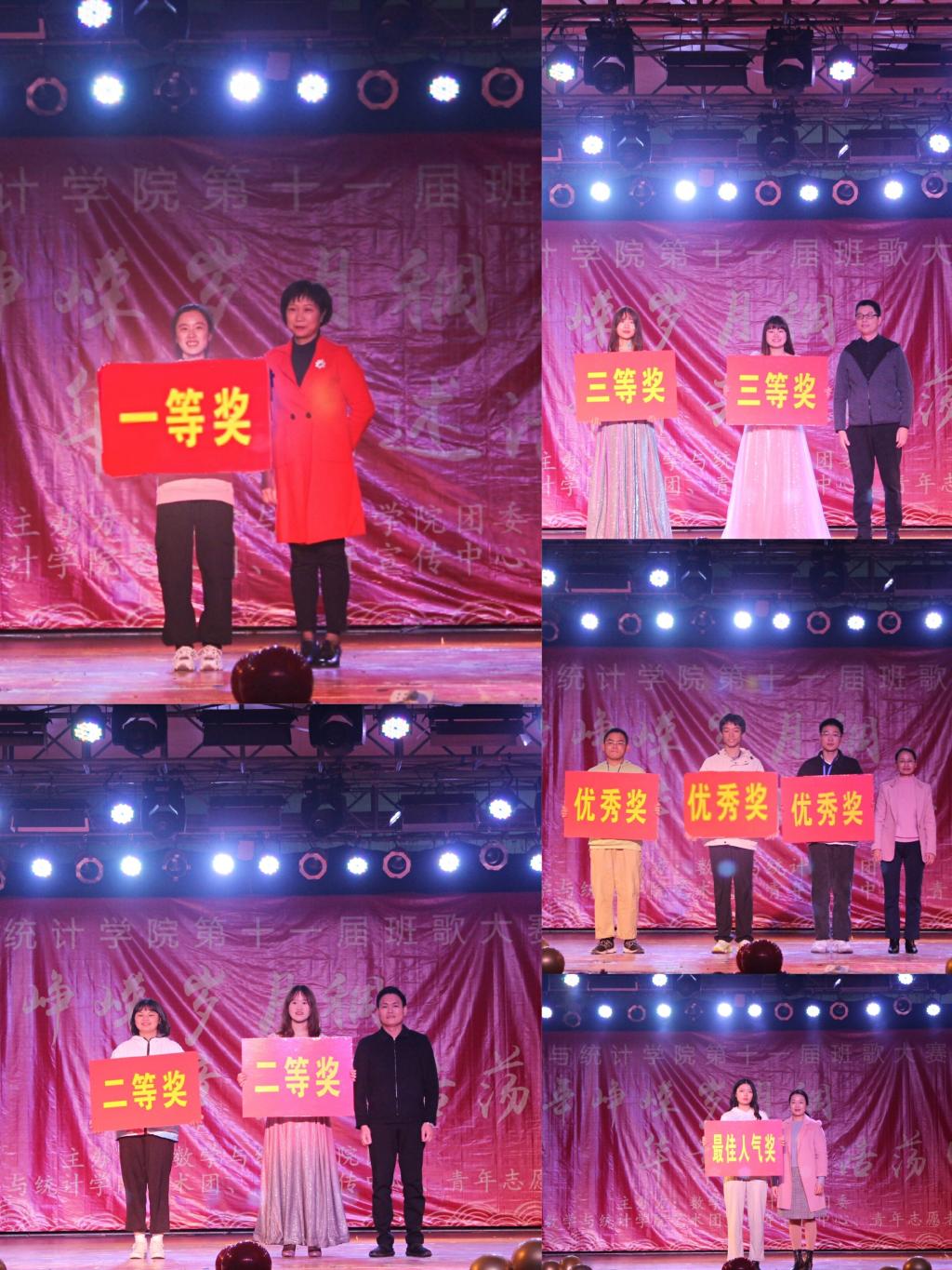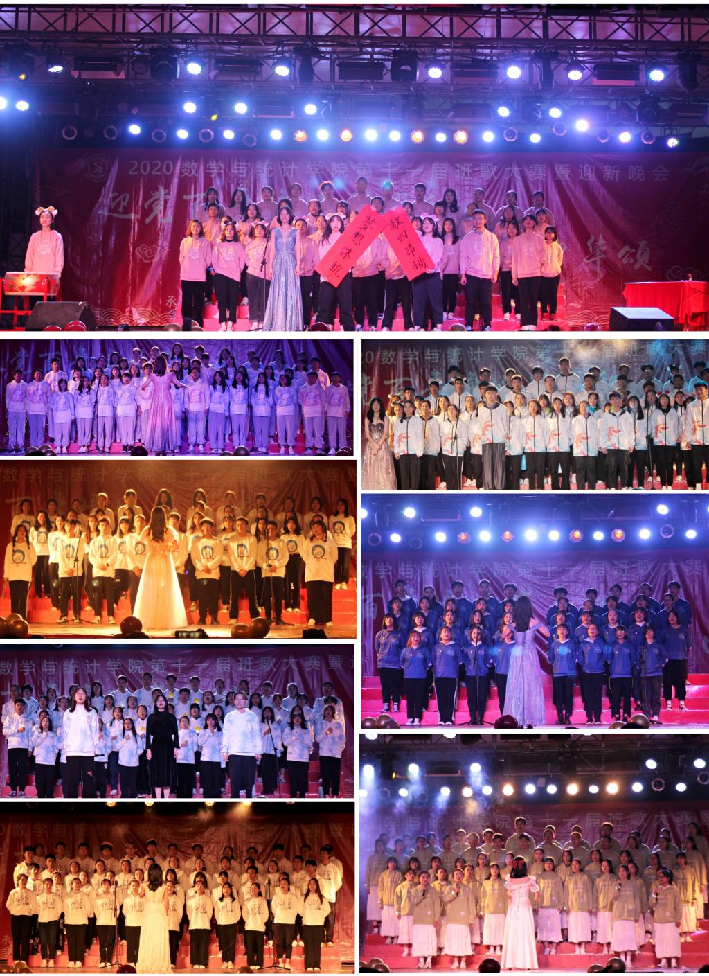 随着彩虹组合带来的正能量说唱《红色》调动全场气氛,晚会正式拉开帷幕。本次班歌大赛由 “坚强篇•九州同心共克时艰”、“奋斗篇•百舸争流天酬勤”、“理想篇•笃志绘梦展宏图”三大篇章组成,寓意数统学子在坚强中奋斗,在奋斗中实现理想。2020级各班同学热情洋溢、神采飞扬,尽显数统学子风采。他们用满腔的热情唱出自己对班级的无限热爱之情,用嘹亮的歌声展出自己对梦想的不断追求和美好憧憬,表达无限的朝气与活力。经过激烈角逐,最终20数本四班荣获一等奖,20信息班、20数本一班荣获二等奖,20统计一班、20统计二班荣获三等奖,20数本二班、20数本三班、20数本五班荣获优秀奖,20数本一班荣获最佳人气奖。