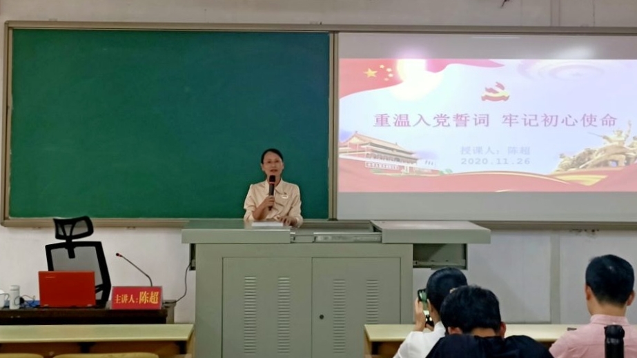 特邀校党委组织部陈超部长为全体学生党员作了“重温入党誓词,牢记初心使命”专题党课,院党委副书记林晓主持,组织员方婷、各级辅导员以及ace动漫