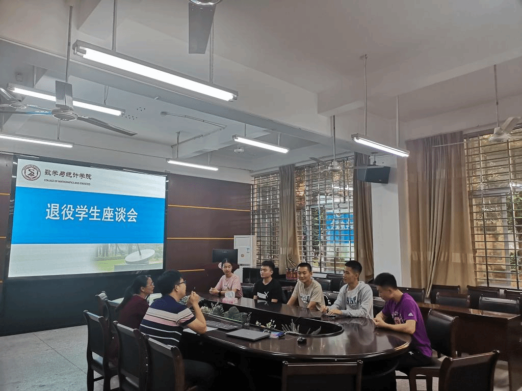 在砺志楼114会议室召开退役学生座谈会。院党委副书记林晓老师、辅导员陈灿滨老师及退役学生代表参加了座谈会。