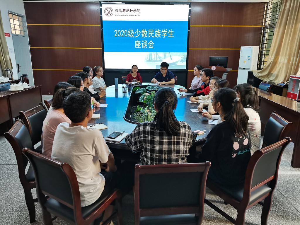 少数民族学生的心声,全面了解学生的学习、生活情况,不断强化管理育人、服务育人的针对性与实效性,进一步增强学生的归属感、获得感、成就感和幸福感,11月5日下午,在砺志楼114会议室组织召开了2020级少数民族学生座谈会。学院党委副书记林晓、辅导员陈灿滨同少数民族学生参加本次座谈会。
