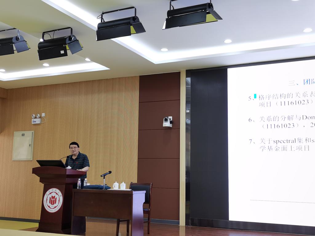 拓扑学及其应用团队建设发展的序幕,进入快速发展期。接着他介绍了拓扑学研究的主要领域涉及广义度量空间、Domain理论、非Hausdorff拓扑、拓扑代数、不确定理论等。最后向研究生们介绍该方向的学术交流与合作,如开展周末讨论班促进团队及研究生方向的拓展,或者邀请国际著名专家促进团队及研究生了解国际研究前沿。徐晓泉教授表示拓扑学及其应用团队在继续发展中,希望有更多的同学加入。