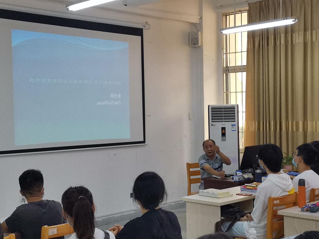 数学系主任周仕荣教授在砺志楼105为2020级教育硕士新生们介绍“数学教育及学科教学(数学)团队情况”。周仕荣教授先就“ace动漫