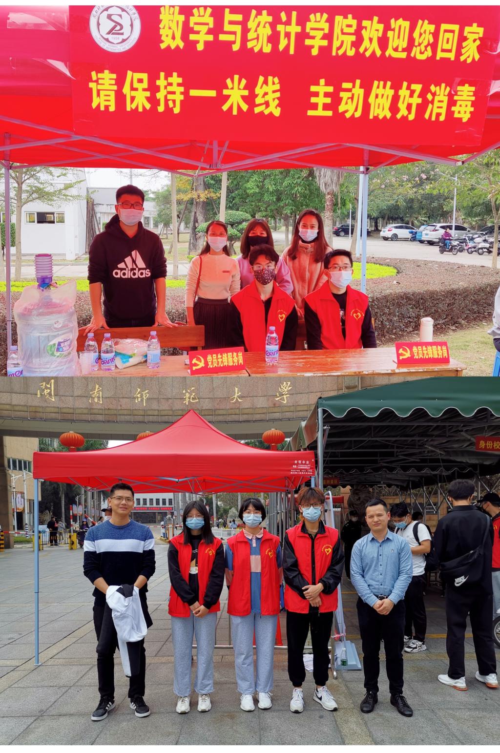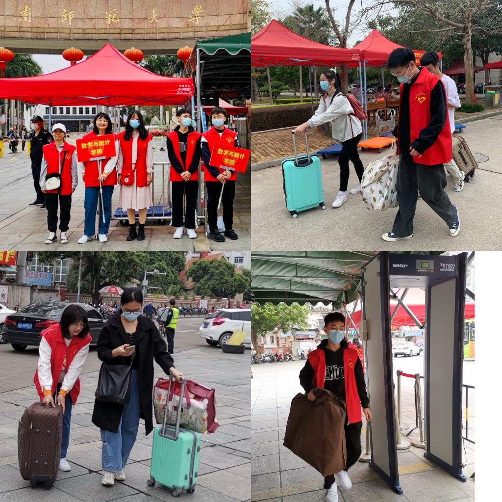 募集了志愿者团队。学生志愿者们早早到场,布置好场地,等待大家的到来。他们热情细致地为刚到校的同学测量体温,认真地核对返校信息,积极主动地帮忙搬行李。