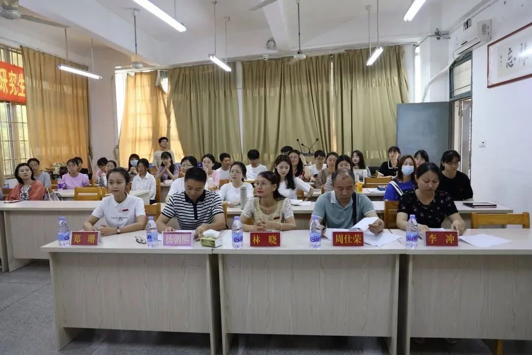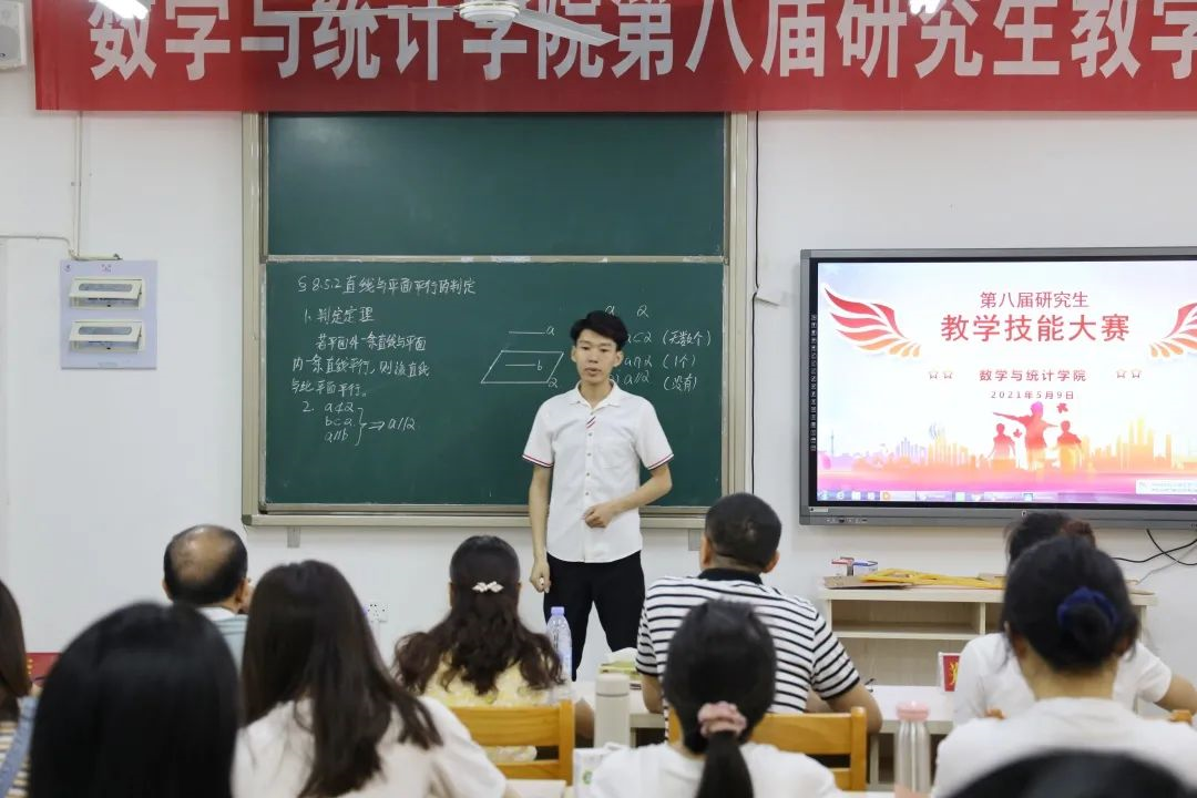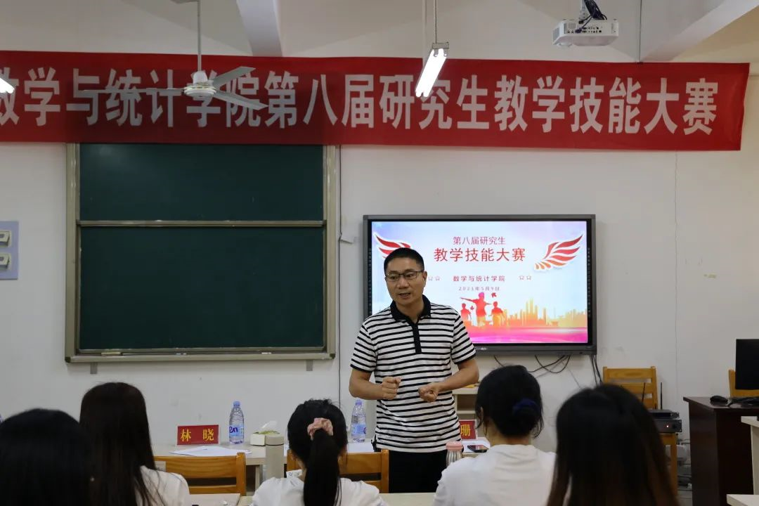 第八届研究生教学技能大赛决赛。学院党委副书记林晓老师、学院数学系主任周仕荣教授、漳州市第三中学高级教师杨朝熙老师、学院李冲老师及研究生辅导员郑珊老师参与本次比赛。