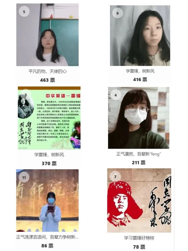 活动过程中,参赛选手通过对雷锋事迹的讲述以及发表自己的感悟,并将自己的演讲过程制作成视频发送给活动负责人。活动本着“公平,公正,公开”的原则,采取全体学生线上投票的评分机制,最终,根据得票情况并结合老师意见评出优秀作品,给予前六名相应的活动分。此次活动在让同学们真切的体会到雷锋精神的同时,进一步推动当代大学生的志愿服务精神建设。学雷锋事迹,做雷锋传人,从身边小事做起,在点点滴滴的实践中,践行并传承雷锋精神,让雷锋精神在薪火相传中绽放时代光芒。