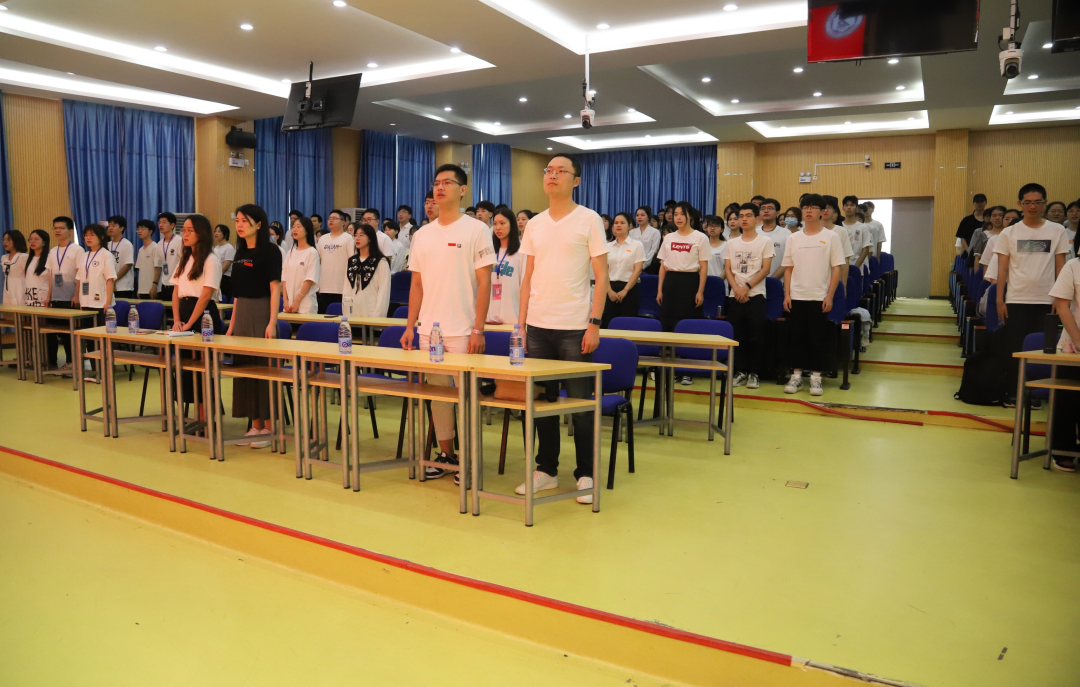 表彰大会在庄严的国歌声中拉开帷幕。随后,常务副院长黄韩亮在会上宣读了2021年度学生参加学科竞赛获得国家级、省级的名单,对获得表彰的学生表示热烈祝贺。学院领导为获奖个人代表颁发了荣誉证书。