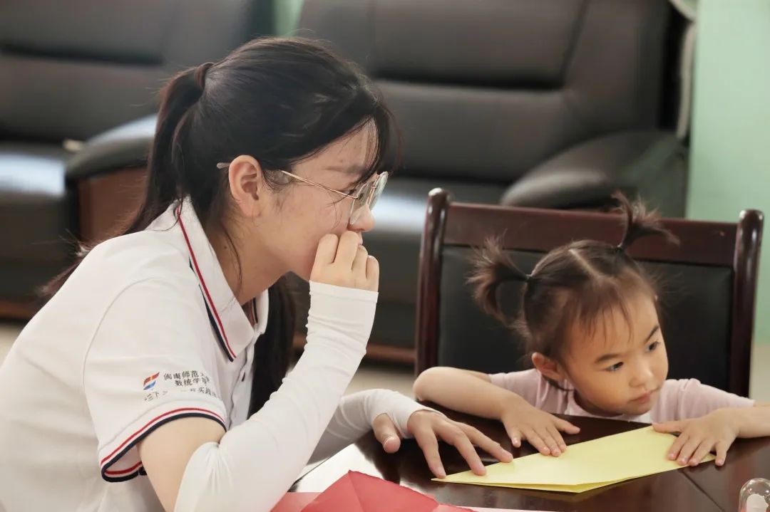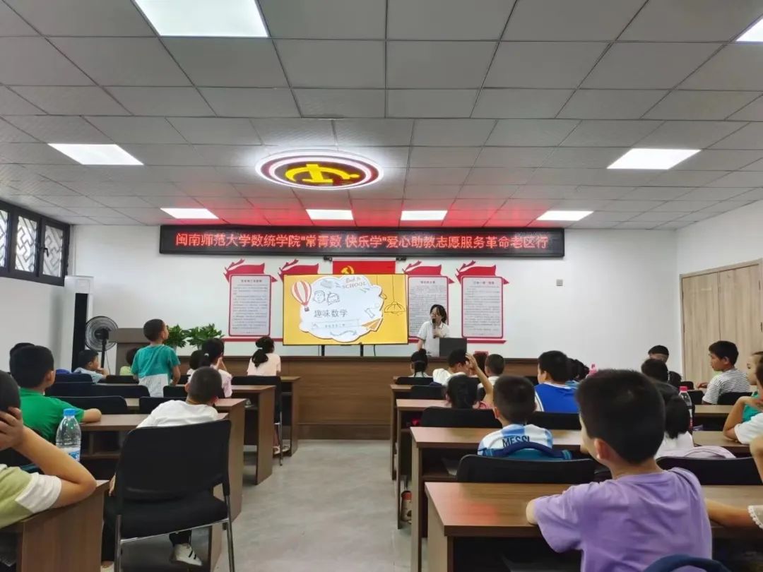 下午,实践队又到大同镇南屏社区,为学生们开展数学启发课和红色故事分享会。红色故事会上,实践队成员介绍长汀本地的红军故事,通过放映红军长征纪录片,分享 “半条棉被”等红军小故事,带领学生们朗诵《东方红》,弘扬长征精神,传承红色基因,厚植学生们的爱国情怀。