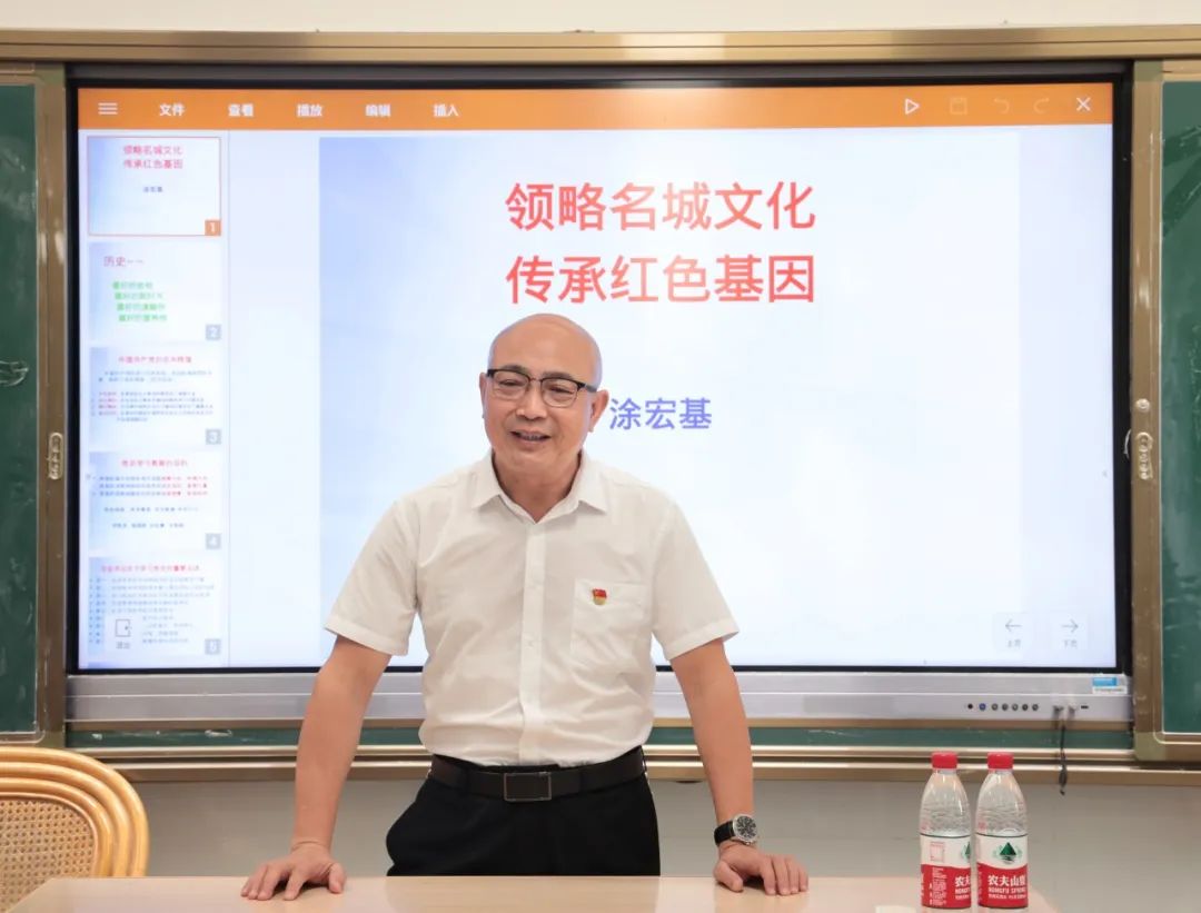 党课上,涂宏基老师分别从“坚定信念”、“感悟理念”、“文化体验”、“交流经验”这四个方面深入阐述,加深师生对长汀优秀文化的理解。接着,涂老师带领大家领略从古至今延绵不断的长汀优秀文化魅力,感受长汀历史之美,探寻长汀文化之根,使师生在学践悟中坚定理想信念,在奋发有为中践行初心使命。