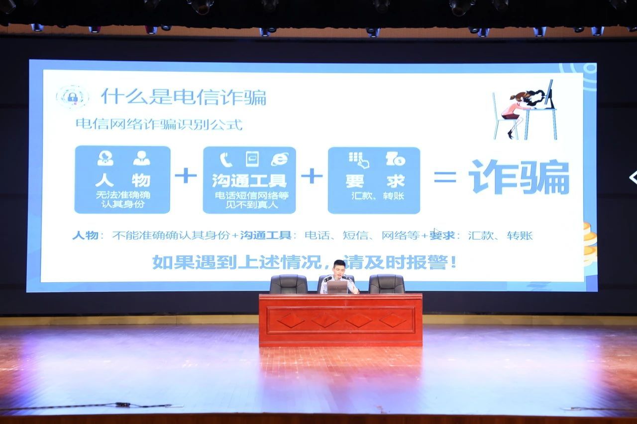 此次讲座旨在让新生进一步认清电信网络诈骗新型违法犯罪的表现形式、诈骗手法,进一步提高了群体识骗、防骗能力,为创建平安校园保驾护航。
